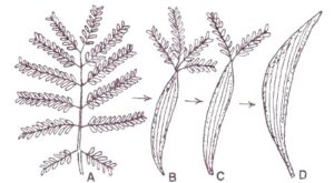 The peculiarity of possessing basal leaf sheath and a simple blade by numerous monocotyledonous families is a common feature. In dicotyledones, such petiole metamorphosed into expanded blade like structure. In Australian Acacia, The petiole or any part of the rachis becomes flattened or winged taking the shape of the leaf and turning green in colour . This flattened or winged petiole or rachis is known as phyllode.